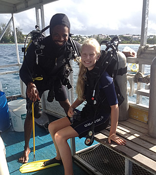 I was taught to swim by my brother underwater before I could swim on the surface. I started diving a year ago aged 10 when I passed my PADI with Barbados Blue.